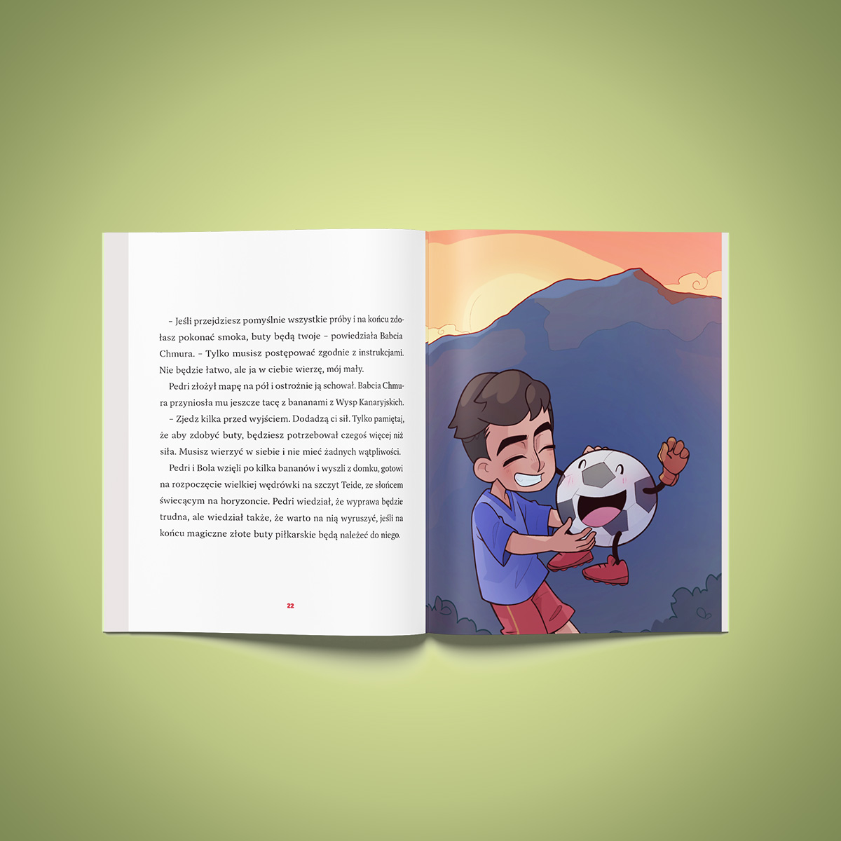 Pedri marzy o grze w drużynie ze swojego miasteczka, ale wszyscy powtarzają mu, że jest… za mały. Kiedy więc tajemnicza Babcia Chmura mówi mu o złotych butach ukrytych na szczycie wulkanu, Pedri wraz ze swoim przyjacielem – piłką Bolą – wyrusza w pełną przygód podróż i odkrywa, że w futbol gra się nie tylko na boisku… lecz także w sercu.